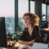 Погрузитесь в мир эффективной продуктивности и организованного рабочего пространства с фотографией где в центре внимания девушка в офисе, она сидит за компьютером рядом с большим количеством бумаг, которая становится символом хаотичной рутины, превращенной в упорядоченный процесс. Это описание подчеркивает важность правильной систематизации задач, инструментов для тайм-менеджмента и шаблонов планирования, которые вы можете применить сразу же.