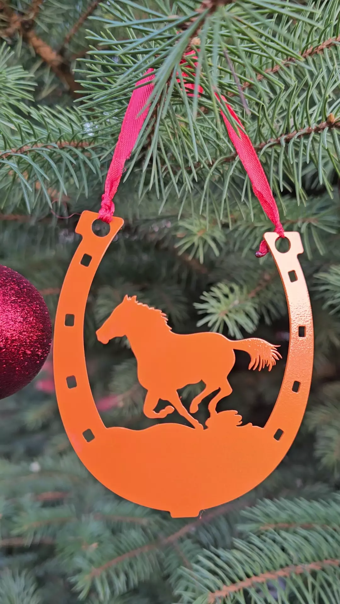 Подключитесь к праздничному настроению и примите участие в создании новогодней атмосферы вместе с нашим специальным видео елочная игрушка, на котором представлена оригинальная игрушка в виде подковы. Внутри игрушки вырезана лошадь и окрашена в ярко-оранжевого цвет, символизирующий удачу и процветание в наступающем году. Тончайшая работа мастера позволила создать игрушку, которая станет украшением любого интерьера. Контраст оранжевого и коричневых оттенков добавляет ей праздничного блеска и привлекает внимание окружающих.