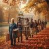 Откройте для себя мир художественного вдохновения и осеннего очарования с помощью нашей уникальной фотографии художники в лесу, на которой изображены они в осеннем парке. Группа мужчин и женщин собралась в живописном уголке природы, создавая картины на тему осени. Каждый из них стоит со своим мольбертом в руках, тем самым держа свои работы. Они различаются стилем и техникой, что свидетельствует о многообразии подходов и творческих предпочтений. Осенние деревья, сменившие летний наряд на багровый и желтый, создают живописный фон, идеально соответствующий мотивам полотен.