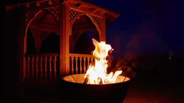 Ищете способ расслабиться после трудового дня и насладиться теплым пламенем огня, тогда предлагаем вам видео костровая чаша, на котором показана она, в романтичной местности. Яркие языки пламени танцующие в ночной темноте, звуки треска дров и шелеста ветвей создадут ощущение полной гармонии и уединения с природой. Вечернее освещение, уютный аромат дыма и неспешный ритм горения создают атмосферу, подходящую для романтических встреч, семейных посиделок или комфортного одиночества. Темный вечер и уютная беседка позади позволяют представить себя участником незабываемых вечеринок и пикников на свежем воздухе.