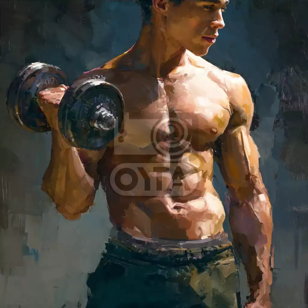 Ваш взор встретит живой и экспрессивный рисунок, на котором молодецкими движениями спортсмен уверенно поднимает гантель, развивая силу и выносливость. Рисунок представляет главное: точное выполнение упражнения, развитие координации и контроль тела. На рисунке изображён молодой спортсмен, сосредоточенно выполняющий упражнение с гантелью в руке. Расслабленная позиция тела, твёрдый хват руки и напряжение трицепса создают единый ансамбль, подчёркивающий правильность выбранного направления и тщательную подготовку.