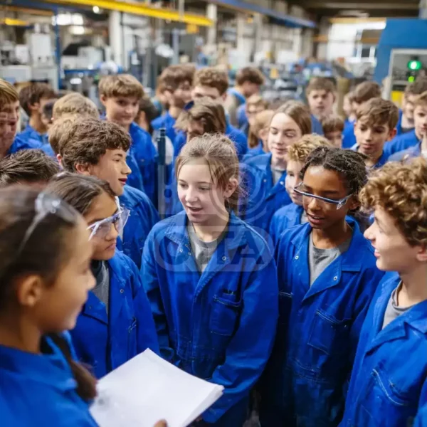 Хотите увидеть, как современные подростки начинают строить свою карьеру и приобретают ценные навыки на настоящем промышленном предприятии тогда ознакомьтесь с нашей уникальной фотографией подростки на производстве. На снимке группа подростков, одетых в фирменную одежду синего цвета, внимательно слушают инструкции старшего сотрудника, получают рекомендации и готовятся приступить к практической работе. Эта сцена отлично передает атмосферу уважения к труду, взаимоподдержки и совместной работы команды.